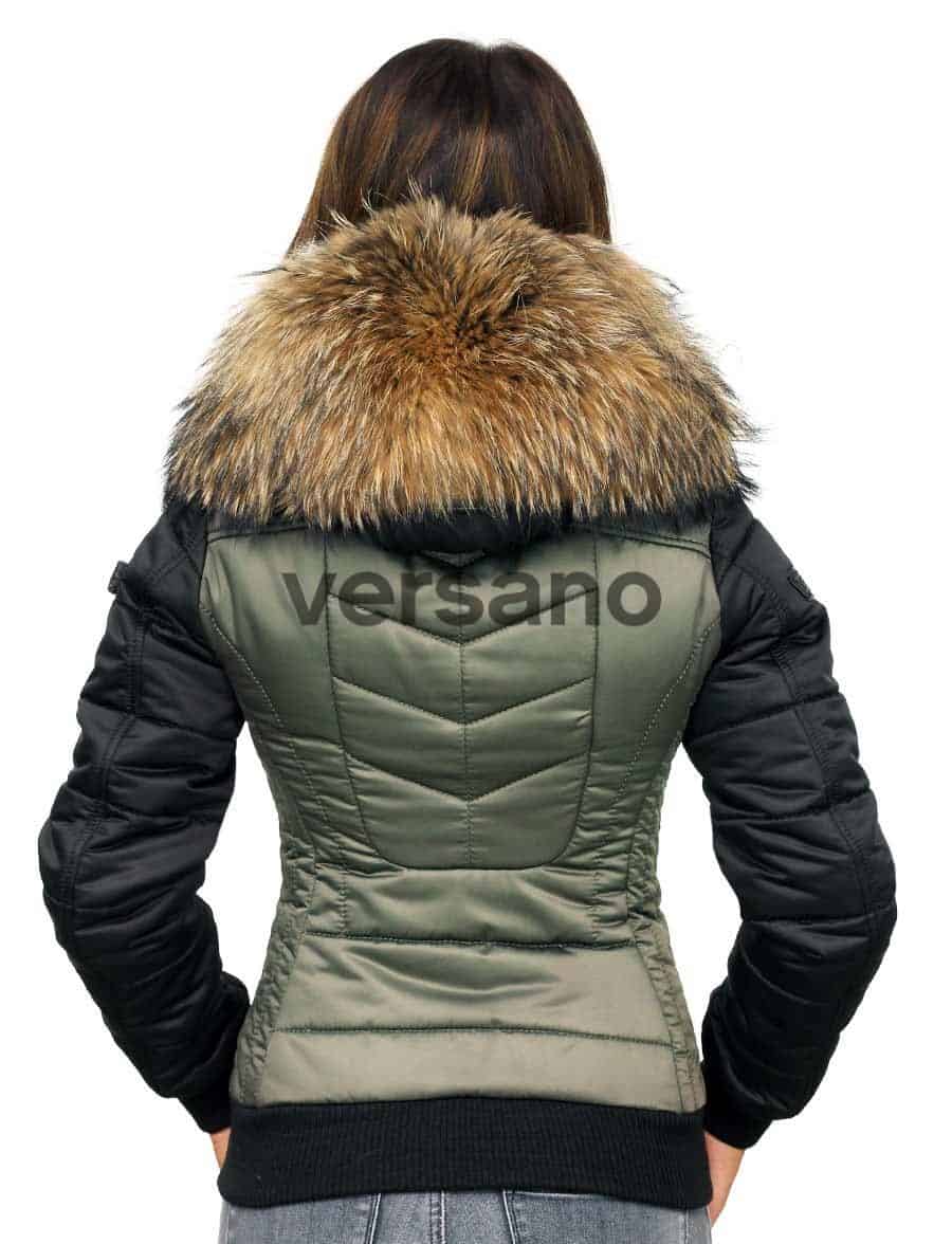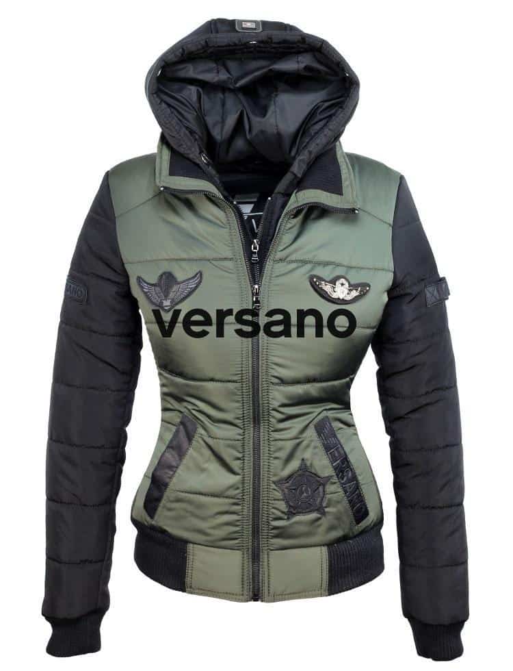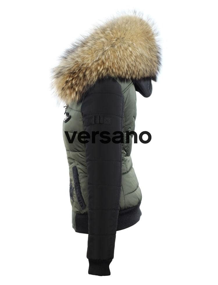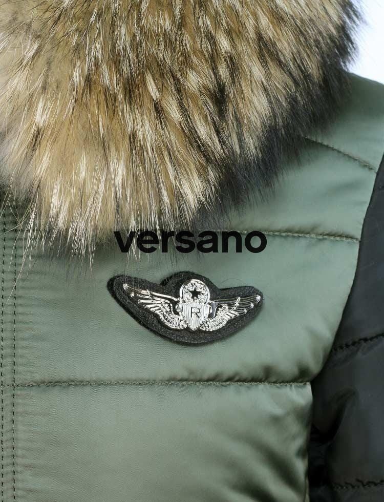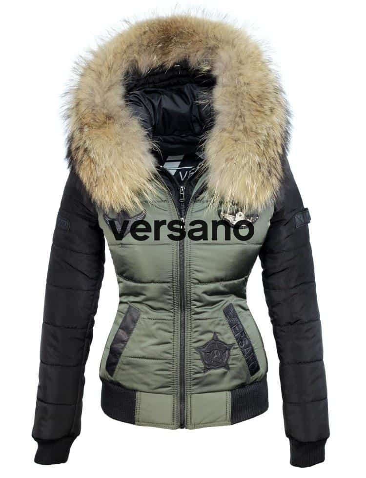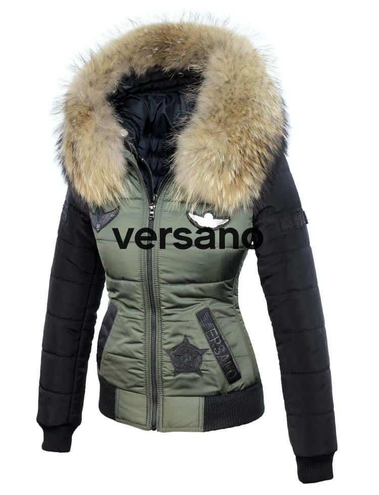 Stoere Versano dames winterjas met badges. Deze damesjas is leuk afgewerkt met badges op de borsten, arm en bij de zijzakken. Zowel de onderrand als de mouwen van de jas hebben een gebreide elastische ribband, waardoor de jas mooi afsluit. De kraag van Raccoon bont is optioneel (los te bestellen). Uiteraard is de bontkraag ook in kunstbont te bestellen in diverse kleuren. De jas heeft een getailleerde pasvorm.