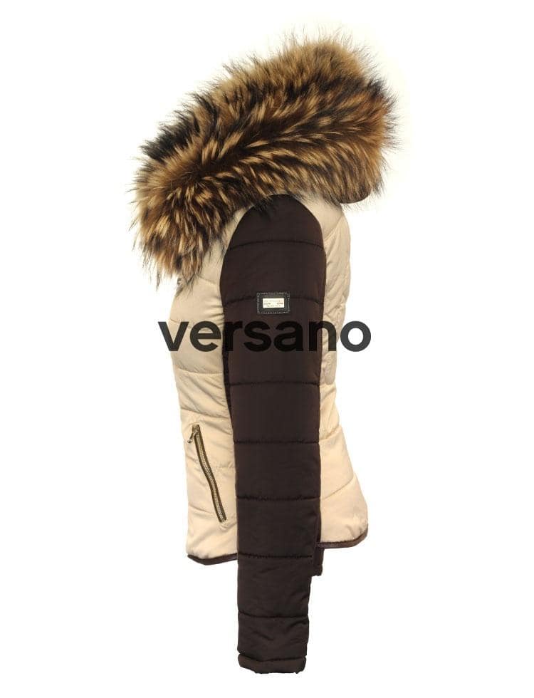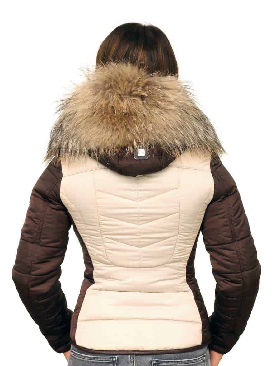 De Shamila dames winterjas met bontkraag in beige/bruin, is echt een eye catcher met de dubbele rits, 2 steekzakken, en een zakje op de mouw. De biezen zijn mooi afgewerkt met bruine rexion leer. De kraag is van 100% American Raccoon bont en optioneel (los te bestellen). Uiteraard is de bontkraag ook in kunstbont te bestellen in diverse kleuren.