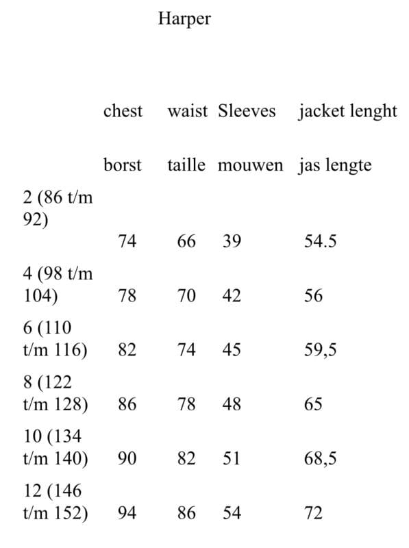 1 = mt 80 t/m 84, 2 = mt 86 t/m 92, 4 = mt 98 t/m 104, 6 = mt 110 t/m 116, 8 = mt 122 t/m 128, 10 = mt 134 t/m 140, 12 = mt 146 t/m 152, 14 = mt 158 t/m 164, 16 = mt 176, 18 = mt 176+